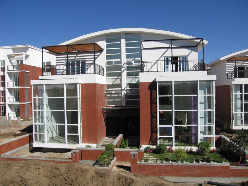 位于內蒙古自治區赤峰市新城區,建筑面積32000平方米,包括疊拼別墅15棟、雙拼別墅10棟、會所2棟,其中疊拼4層、雙拼3層,為磚混結構;會所3層,為現澆框架結構。
